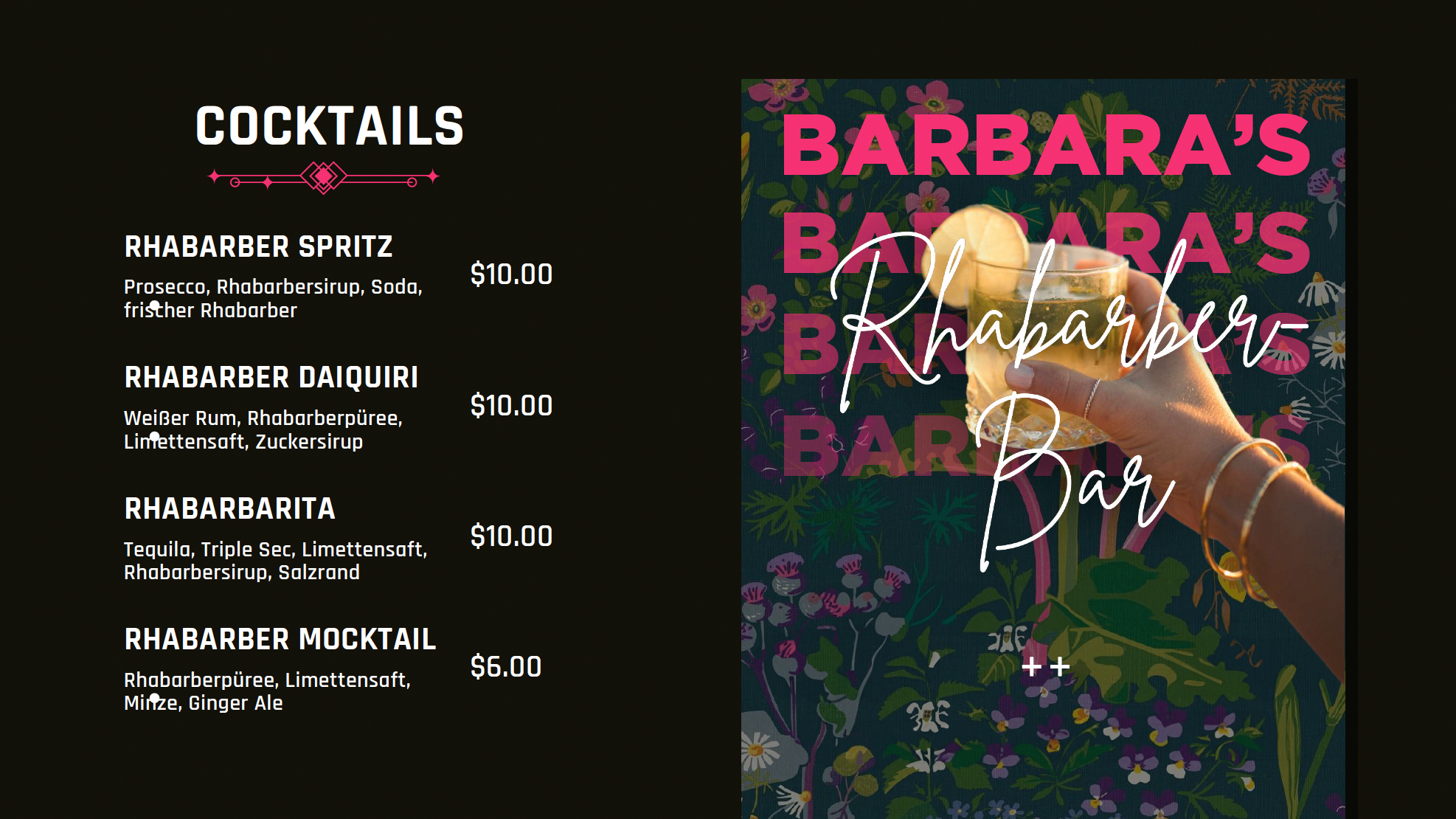 cocktail-menu on Rhabarberbar Sphere from RockandStars.de